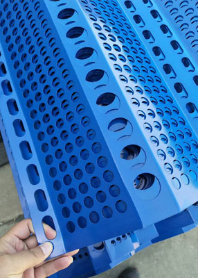+more金屬防風(fēng)抑塵網(wǎng)板材厚度0.5mm-1.5mm之間,均是由數(shù)控設(shè)備進(jìn)行沖孔,成型,再進(jìn)行雙面高壓靜電粉末噴涂的表面抗腐蝕處...